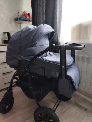 Коляска в хорошем состоянии, надежная, устойчивая, зима-лето, регулируемая ручка, колеса надувные, ход мягкий, без...