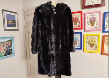 Продам шубу норковую с капюшоном, цвет чёрный, длина 90 см, р.