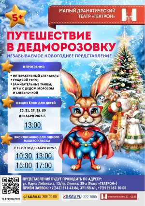 "ПУТЕШЕСТВИЕ В ДЕДМОРОЗОВКУ" (невероятное интерактивное представление для детей от 5 до 12 лет) ДедМорозовка – чудесная...