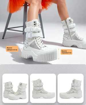 Эффектные летние стильные берцы с сеткой , из натуральной кожи , цвет белый 🤍 размер 36- 37. Новые Стоимость 3500