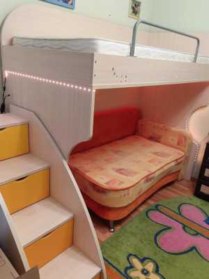 Продам мебель для детской комнаты: ▪️Каркас + матрас (верхний ярус 90х200) ▪️Лесенка с ящиками ▪️Стол +тумба с выдвижными...