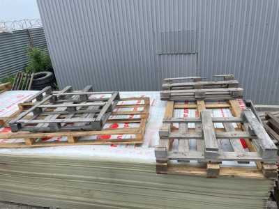 Из евровагонки и доски. Покрытие - антисептик. Крыша - металлический профлист. Привезу.